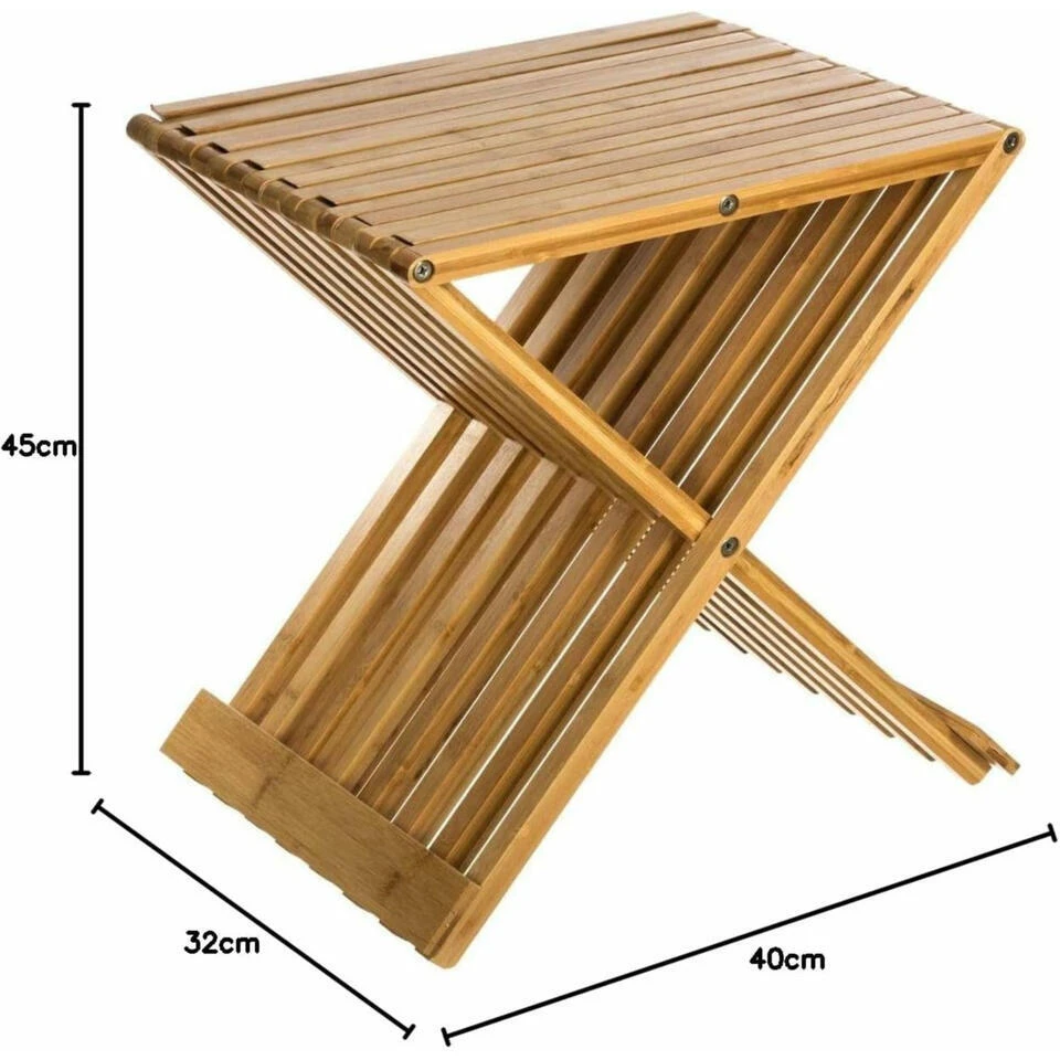 Opvouwbare bamboe stoel / kruk – Deze veelzijdige bamboe stoel is ideaal voor zowel binnen- als buitenshuis gebruik. Met zijn opvouwbare ontwerp biedt hij gemak en functionaliteit, en voegt hij een natuurlijke uitstraling toe aan je ruimte. let op: belastbaar tot max. 60 kg.