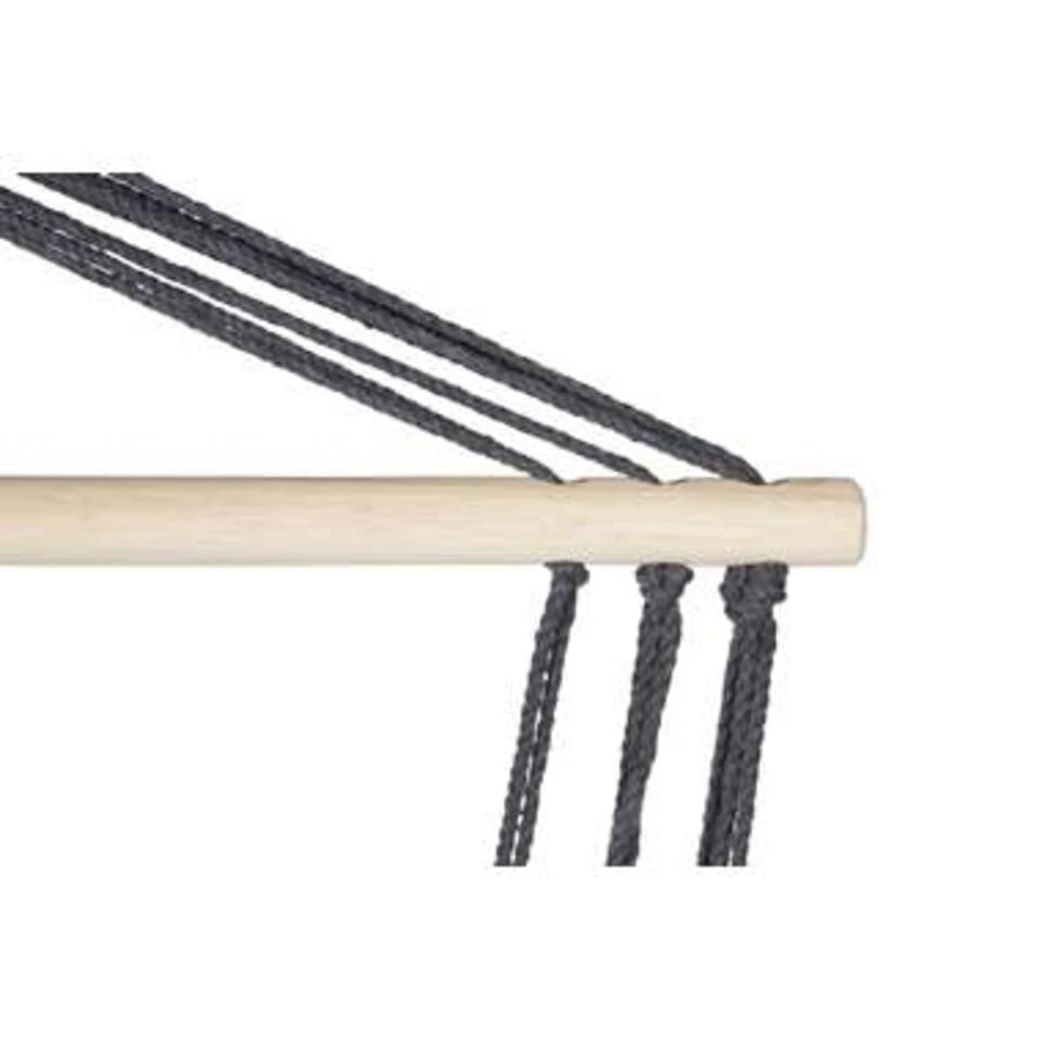 Details van de hangende tuinstoel: De hangmat is gemaakt in een grijze kleur. Hij meet 115 x 60 x 90 cm en is ideaal voor 1 persoon.
