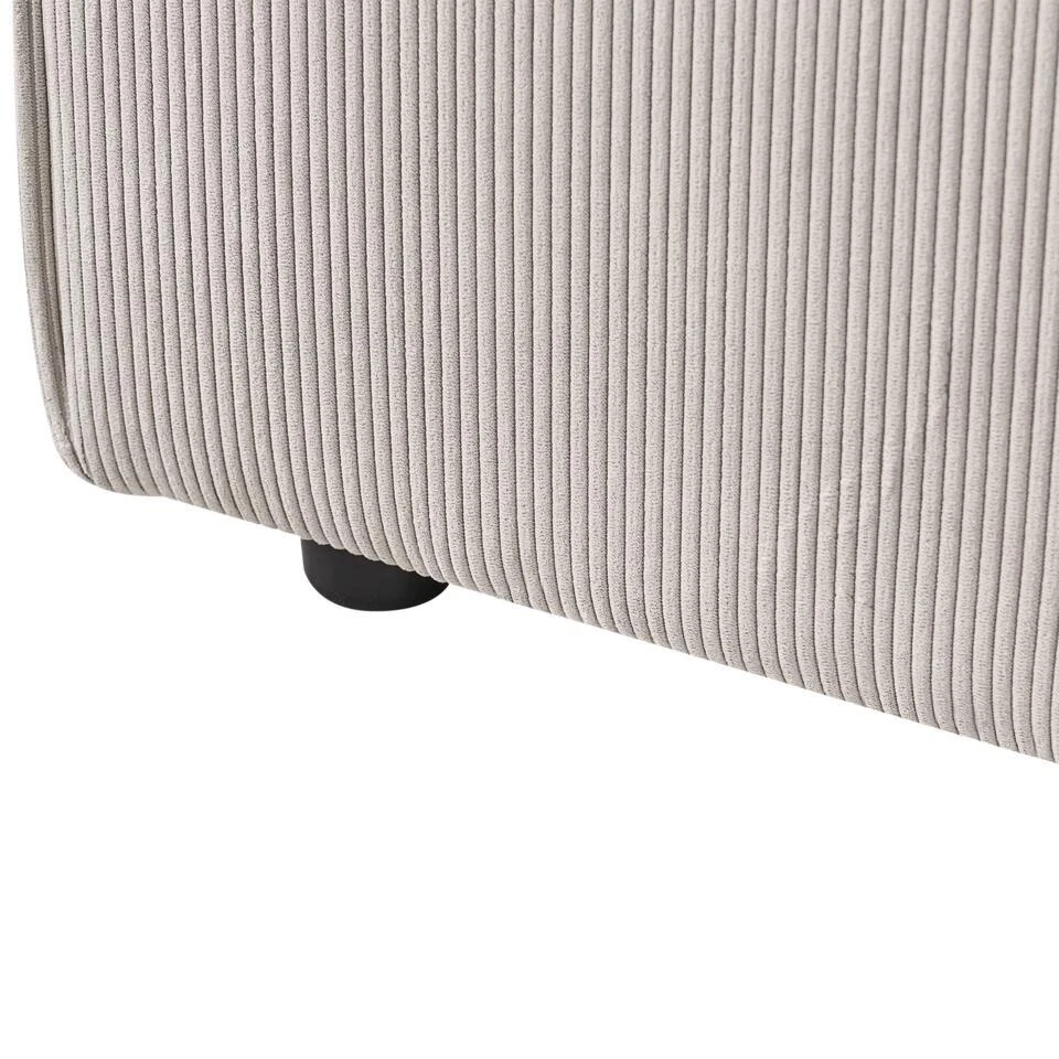 Extra informatie: Houd er rekening mee dat corduroy-stof er een beetje anders uit kan zien wanneer het wordt blootgesteld aan verschillende soorten licht – het heeft de neiging meer te glinsteren bij daglicht en ziet er meer afgezwakt uit bij kunstlicht binnenshuis.