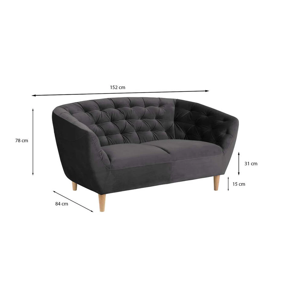 Deze bank heeft zwarte pootjes (op de foto met de afmetingen staan blanke pootjes, maar deze bank heeft zwarte pootjes).