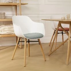 Nolon Nena-Liz Eetkamerstoel Wit – Armleuning – Zacht Groen Kussen