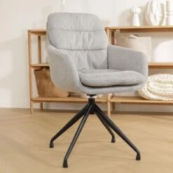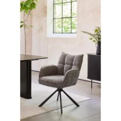 Nolon Nola-Mia Eetkamerstoel Grijs – Draaibaar – Armleuning – Zwart