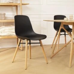 Nolon Nena-Pip Eetkamerstoel Zwart – Kunststof – Houten Poten
