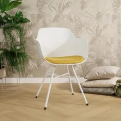 Nolon Noa-Liz Eetkamerstoel Wit – Okergeel Kussen – Witte Poten
