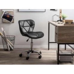 CLP Bureaustoel Elbing Zwart Frame – Kunstleer – Zwart/blauw