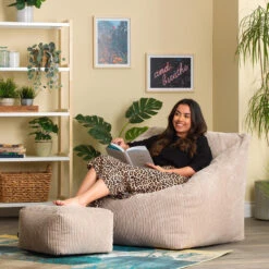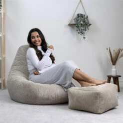 Icon Zitzak En Poef Natalia – Chenille Zitzak Fauteuil – Beige