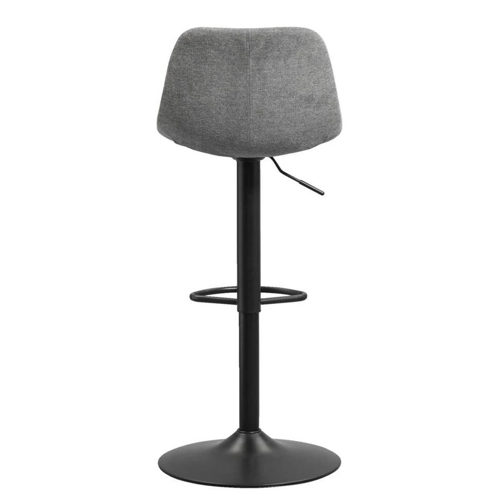 Barkruk Liam in de kleur grijs is een moderne barkruk met kuipzitting die mooi aansluit in jouw interieur. Je kunt de kruk gemakkelijk in hoogte verstellen waardoor hij altijd onder jouw bar of aan jouw kookeiland zal passen. De kruk is bekleed met een zachte grijze stof. Deze stof is van een stevige kwaliteit en is gemakkelijk schoon te maken. De barkruk staat stevig op een strakke poot van zwart metaal. De afmeting van deze barkruk is: 87-109x52x45 cm (hxlxb). Ook verkrijgbaar in groen.