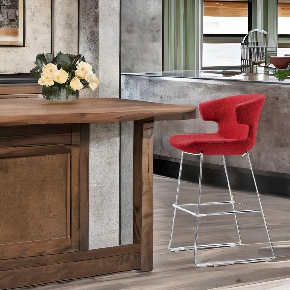 Is jouw interieur toe aan vernieuwing? Heb jij een bartafel maar nog geen stoelen? Kies dan voor deze uniek vormgegeven barstoelen! De Lima barkruk heeft een voorgevormde zitting van schuim. De zitting en rugleuning zijn bekleed met een moderne rode stof.
