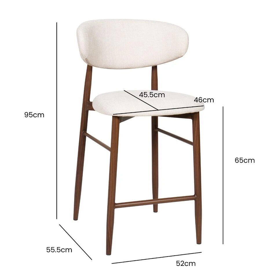 Materiaal: De zitting van de Barstoel Alexia is gemaakt van stof/textiel, wat zorgt voor een comfortabele zitervaring. Het metalen onderstel biedt een stevige basis en draagt bij aan de duurzaamheid van de stoel.