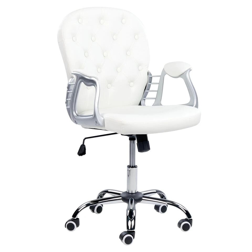 Draaibare, elegante bureaustoel. Deze luxe stoel combineert een moderne look met een vintage accent. Door de afgeronde, gevulde armleuningen is het comfort verzekerd. Een geïntegreerd draaimechanisme en een gaslift zorgen voor een totale aanpassing aan je figuur. Kortom, een veelzijdige optie voor verschillende kantooromgevingen.