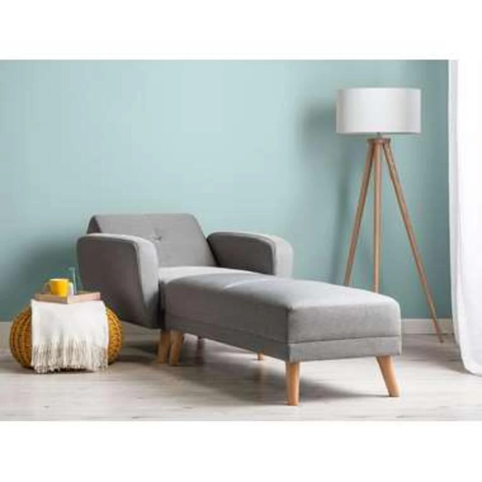 Veelzijdige ottomaan in retro-stijl in lichtgrijs. Ruimtebesparend, trendy en ongelooflijk praktisch. Deze comfortabele, met lichtgrijs polyester bedekte poef is veelzijdig en kan worden gebruikt als een extra stoel, als handige opbergruimte voor tijdschriften of een tablet met drankjes en als een comfortabele kruk om je voeten op te zetten.
