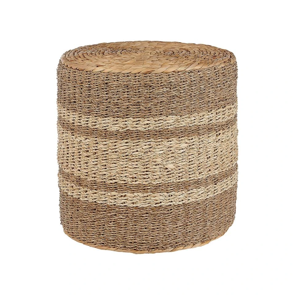 Handgeweven ronde poef. Verfraai de uitstraling van je woon- of slaapkamer met deze uitzonderlijke extra zitplaats. Dit product is handgeweven van natuurlijke materialen en past uitstekend bij veel interieurontwerpen. Het stuk is multifunctioneel, naast een poef kan het ook dienst doen als voetenbankje. Bovendien kan dit meubel dankzij de stabiele constructie en het platte blad ook als bijzettafel worden gebruikt.