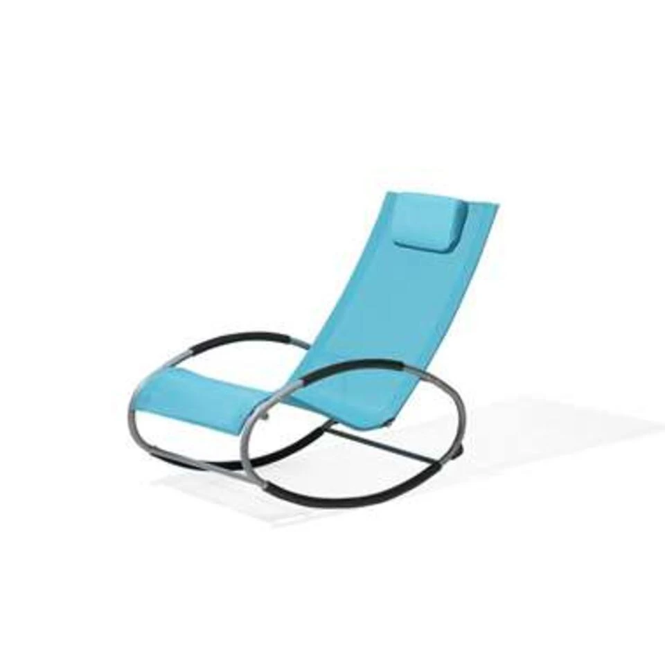 Trendy ligbed voor de tuin in blauw. De eigentijdse stijl van dit ligbed wordt aangevuld door het ergonomische ontwerp. Hoepels van gepoedercoat staal geven het meubel een dynamisch gevoel en maken een zachte schommelbeweging mogelijk. Met antislipbekleding op het onderstel en de armleuningen en een afneembare hoofdsteun biedt deze stoel je ultiem comfort.