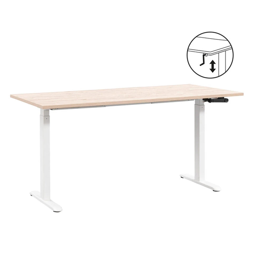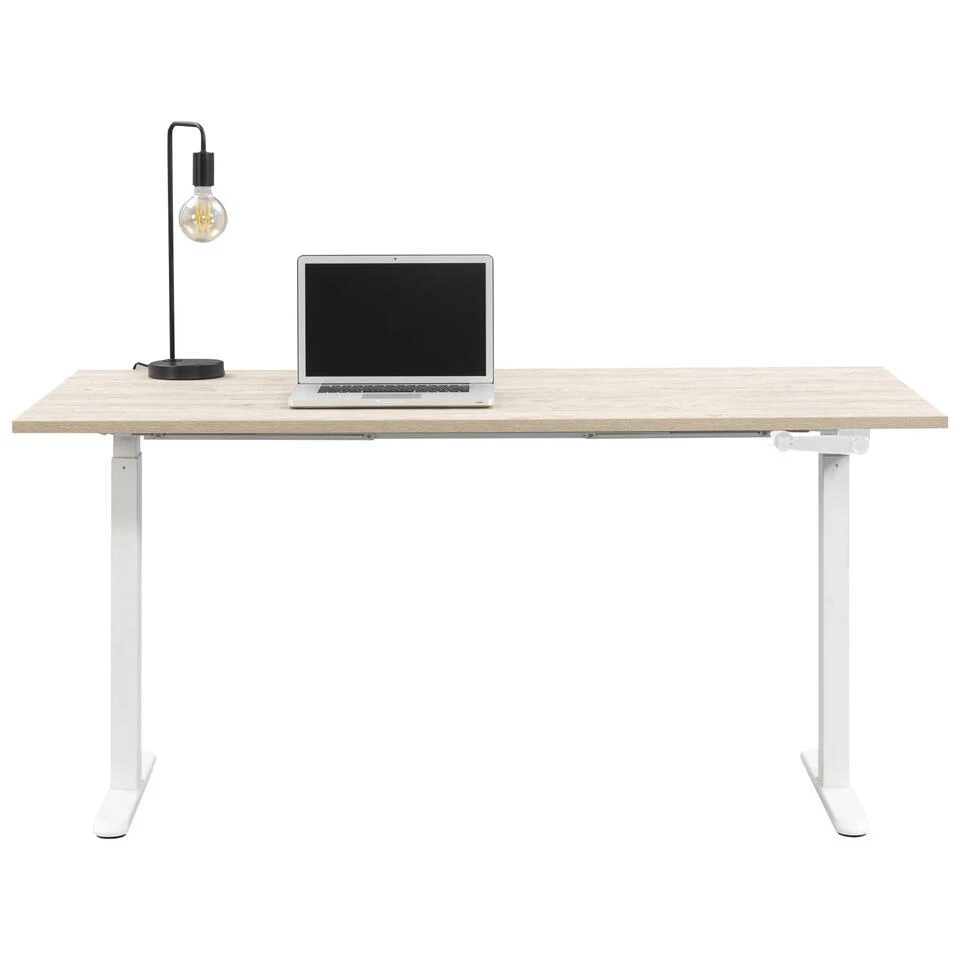 Bureau Homeworx is een eigentijds en modern zit/sta bureau. Het bureaublad is gemaakt van naturel hout en het onderstel is van wit metaal. Door de zit/sta functionaliteit creëer je zo een ergonomische werkplek die past bij jouw interieur. Het paneel om het bureau in hoogte te verstellen is zowel links als rechts te plaatsen.