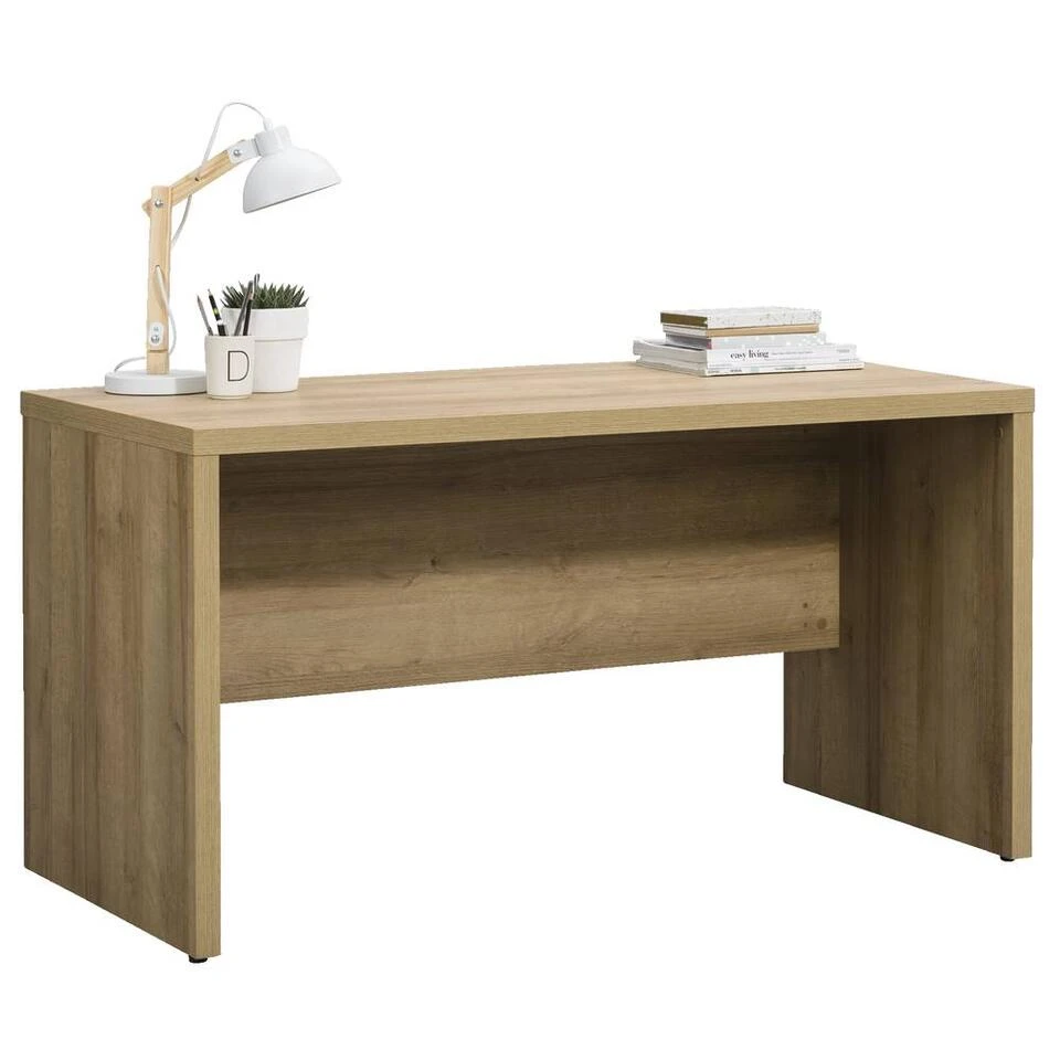 Bureau Schema is een stijlvol en praktisch bureau met een klassieke look. Het bureau is eenvoudig vormgegeven gemaakt van spaanplaat en afgewerkt met melamine. Werk je af en toe thuis? Dan is dit bureau ideaal. Het bureau heeft een elegante eikenkleur. Heb je extra opbergruimte nodig? Koop er dan een bijpassend ladeblok op wielen bij. Zo heb je in een handomdraai een complete werkplek.