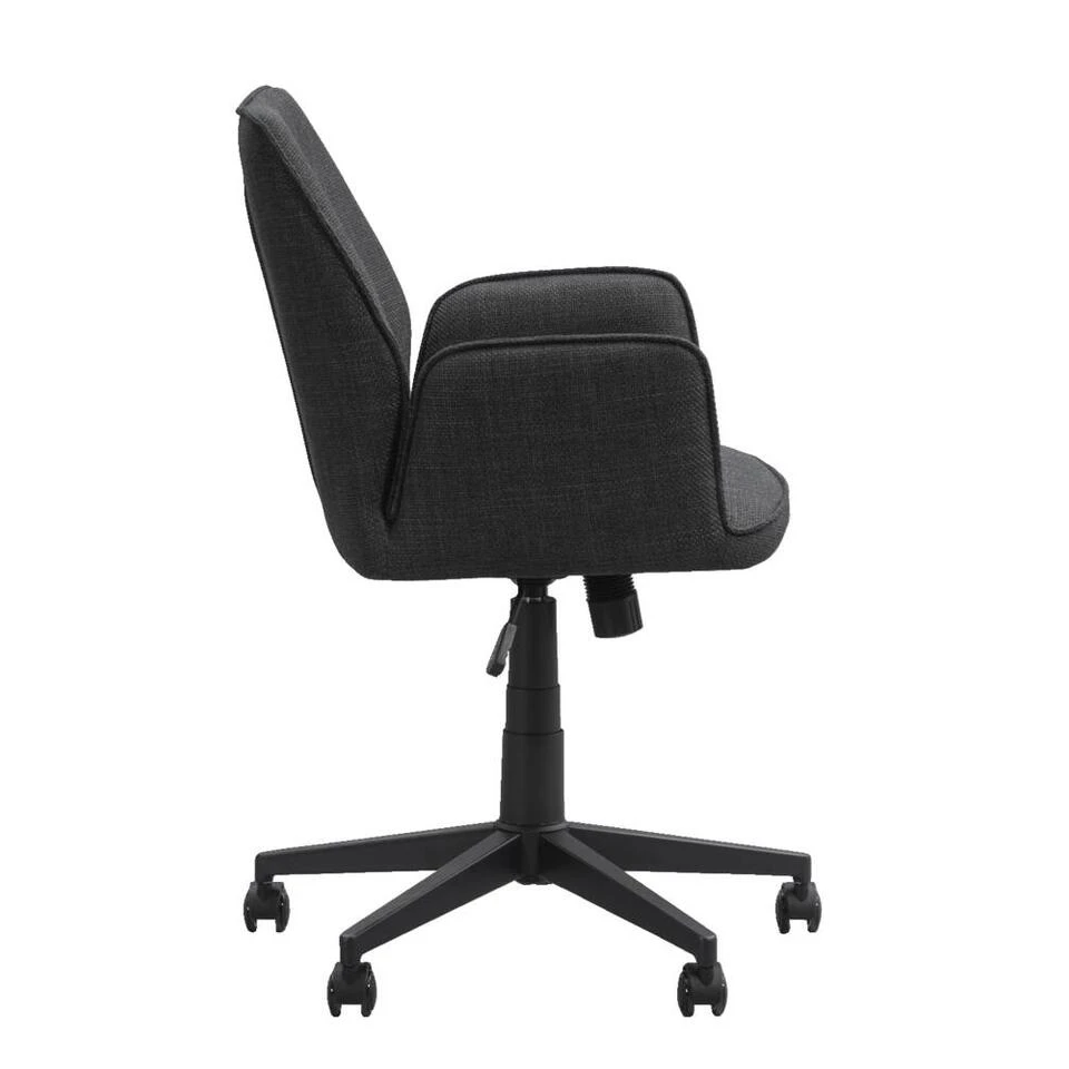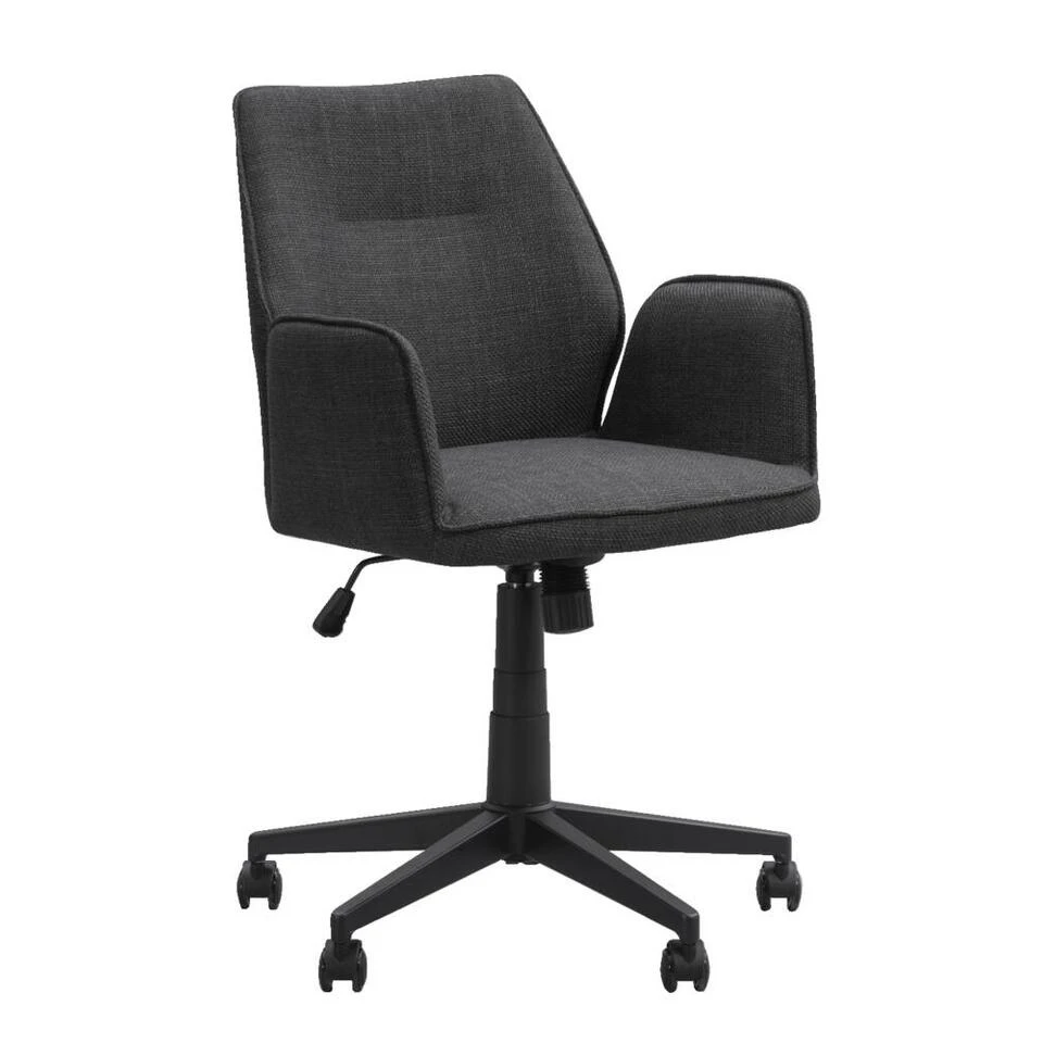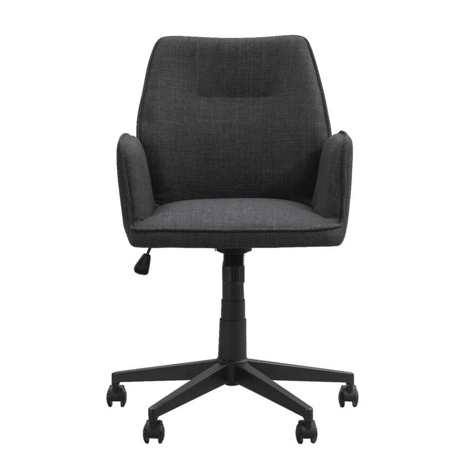 De bureaustoel Raffy in de kleur antraciet is de perfecte mix van comfortabel en stijlvol. Deze draaibare stoel is praktisch en in hoogte verstelbaar, waardoor hij ideaal is voor elke werkplek. Bovendien staat hij leuk in je interieur, met een moderne uitstraling die elke ruimte direct opfleurt. Raffy schuif je gemakkelijk bij als extra zitplek aan je eettafel en zal niet misstaan!