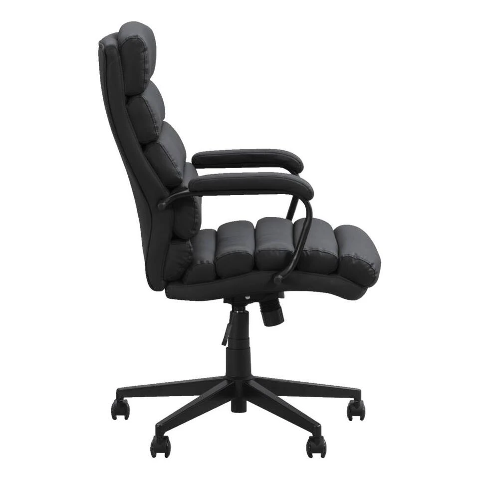 De bureaustoel Rolf in zwart combineert comfortabel en stijlvol design met praktische functionaliteit. Deze draaibare stoel is in hoogte verstelbaar, waardoor hij zich perfect aanpast aan jouw werkplek. Dankzij zijn strakke uiterlijk staat hij leuk in je interieur en voegt hij een moderne touch toe aan elke ruimte.