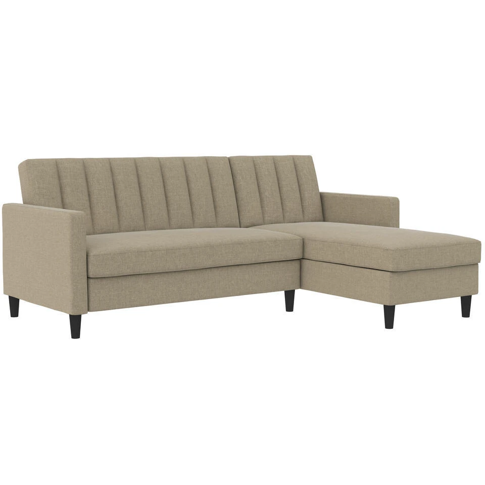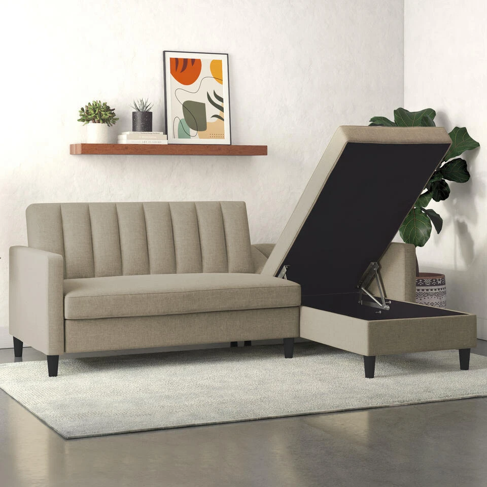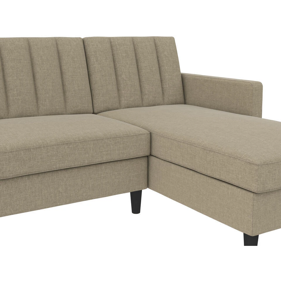 Deze hoek slaapbank biedt groot zitcomfort. Het kan moeiteloos worden omgezet van een bank naar een bed. De chaise is omkeerbaar en kan links of rechts worden gemonteerd. De slaapbank heeft een hoogwaardige linnenlook bekleding. Het heeft extra opbergruimte voor dekens en kussens. De maximale draagcapaciteit van elke zitplaats is 135 kg. De slaapbank kan eenvoudig worden gemonteerd met de meegeleverde hardwaretas. Met zijn tijdloze design is deze slaapbank gemakkelijk te combineren met alle stijlen van uw kamer.