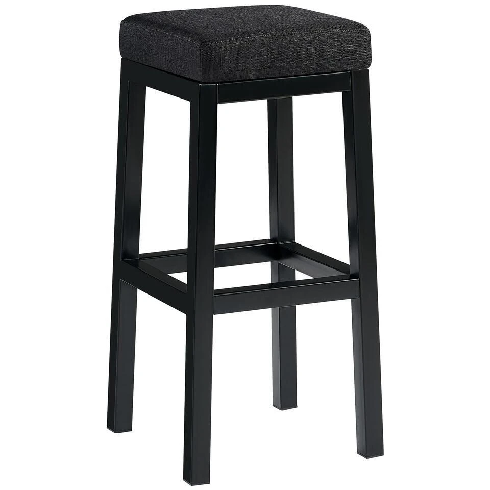 De vierkante zitting van de barkruk is comfortabel, zelfs zonder armleuningen en rugleuning. Hiervoor zorgt de bekleding, naar keuze bekleed met stof of kunstleer.