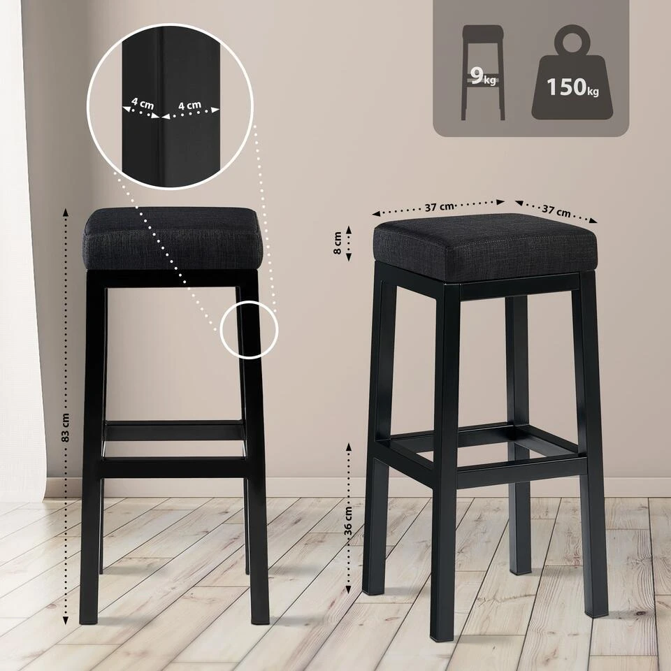 De kruk staat op een stevig vierpootsframe van matzwart metaal. Dit frame is uiterst stabiel en vloervriendelijk, zodat het gevoelige vloeren niet beschadigt. De dwarsbalken van het frame kunnen worden gebruikt als comfortabele voetensteun en zorgen voor extra stabiliteit, zodat de barkruk tot 150 kg kan dragen.