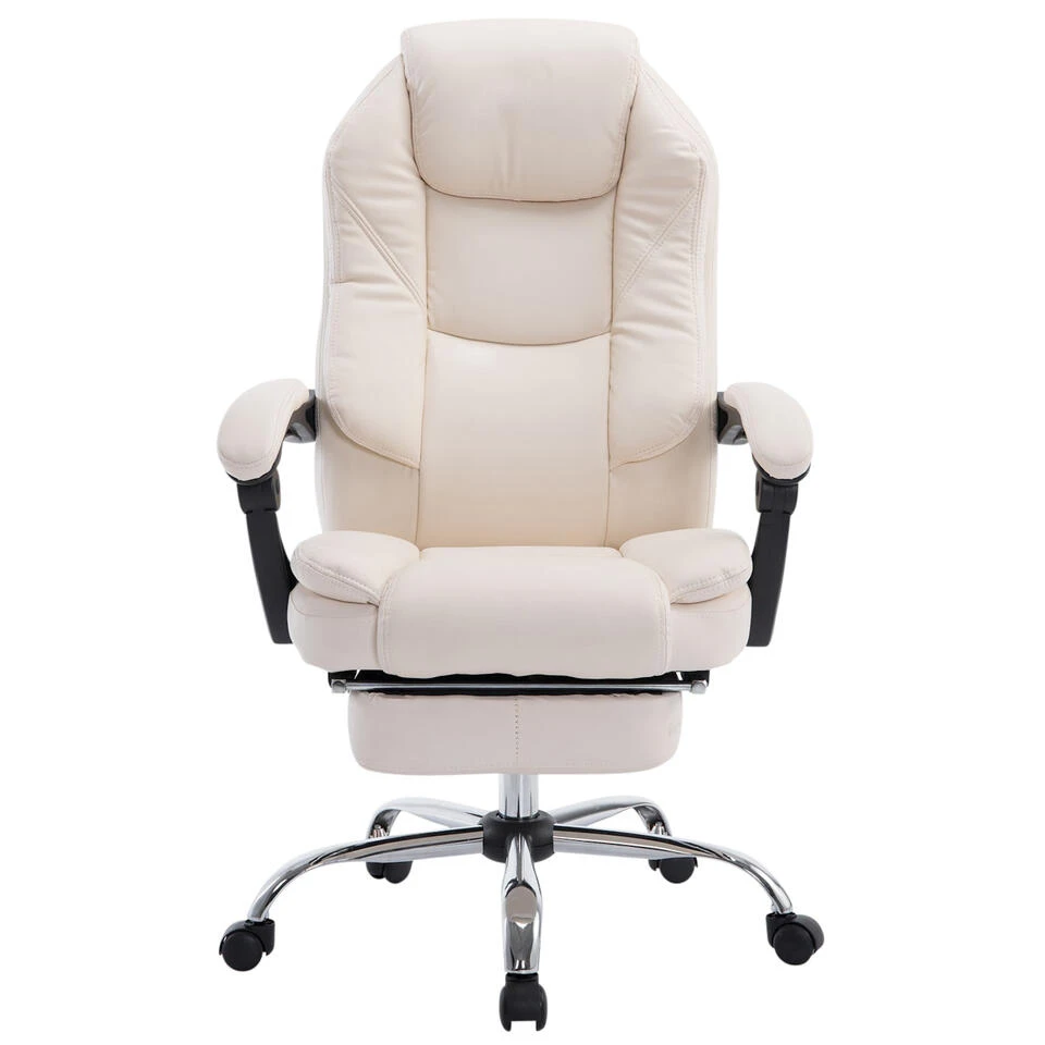 Met de bureaustoel Castle wordt gezelligheid in de klassieke look aangekondigd. Een hoogwaardige bekleding en een onderhoudsvriendelijke kunstlederen hoes zorgen voor een comfortabel zitervaring, dat zelfs bij langdurig verblijf aanhoudt. De gemakkelijk instelbare voetsteun en rugleuning zorgen ook voor een aangename pauze tussendoor, zodat u achterover kunt leunen en uw benen kunt ontspannen. Dankzij de traploos verstelbare zithoogte garandeert de bureaustoel Castle ook altijd ergonomische stoelen. Hij staat stabiel op vijf lichtgewicht zwenkwielen en een frame van metaal in chroomlook.