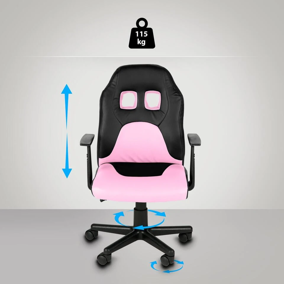 Deze hoogwaardige bureaustoel met sportief design is het juiste voor uw kind ! De onderhoudsvriendelijke kunstleren bekleding oogt niet enkel mooi, zij is vooral heel duurzaam en makkelijk schoon te maken. Het onderstel uit robuuste kunststof geeft de stoel de nodige stabiliteit. Vijf zwenkwielen laten de stoel vlot rollen, zowel op zachte als op harde ondergrond. De zithoogte is traploos verstelbaar en kan aan iedere lichaamsgrootte aangepast worden.