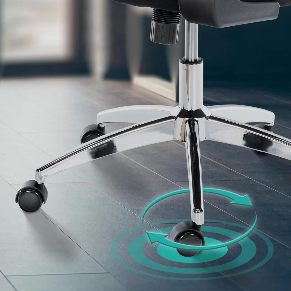 De stoel is uitgerust met vijf lichtlopende wielen en een 360° draaifunctie, waardoor flexibel gebruik mogelijk is. Geschikt voor verschillende gebruiksgebieden zoals thuiskantoor, kantoor of gaming. De robuuste constructie zorgt voor een lange levensduur.