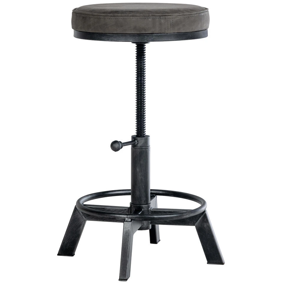 De hocker Destin is gemaakt in een stijlvol industrieel ontwerp en is veelzijdig genoeg om in elke kamer te worden gebruikt. Ongebruikelijke look, conventionele materialen, dat maakt deze hocker tot een bijzondere blikvanger. De dik gestoffeerde zitting is bekleed met kunstleer. Om de zithoogte in te stellen en hinderlijk wiebelen te voorkomen, zorgt een vergrendelingskruk onder de zitting voor stabiliteit. Het 4-poots metalen frame, dat ook voorzien is van een praktische voetsteun, garandeert verdere stabiliteit. Vloerbeschermers voorkomen dat de vloer wordt bekrast.