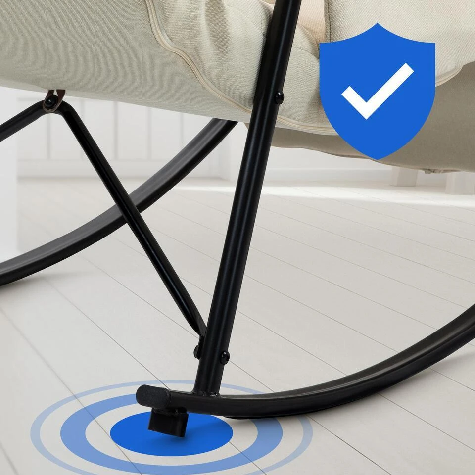 De bekleding met modieus doorgestikt patroon is verkrijgbaar met een stoffen of fluwelen hoes. Het gepoedercoate metalen frame draagt bij aan de moderne uitstraling en hoge stabiliteit. De schommelstoel kan een gewicht tot 125 kilo veilig dragen.