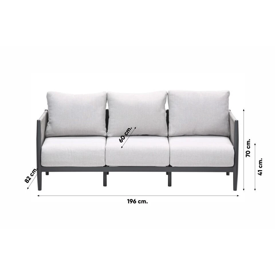 De afmetingen van de driezitsbank zijn 196 x 82 x H70 cm. De lounge fauteuils meten 82 x 72 x H70 cm en de zithoogte bedraagt 41,5 cm.
