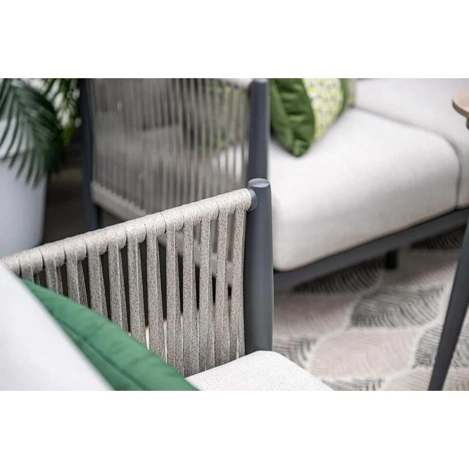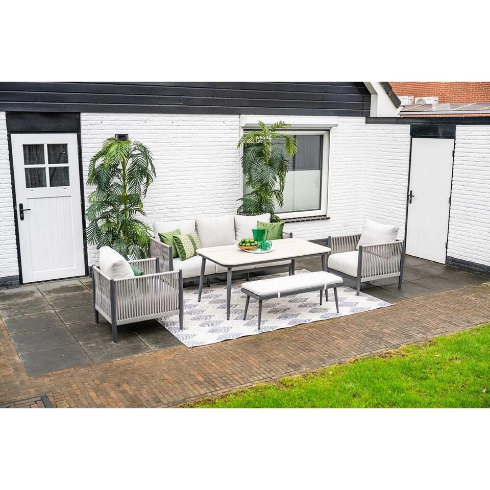 Bij de Diamo loungeset kunt u zelf een tafel uitzoeken. U kunt de loungeset bijvoorbeeld combineren met een medium hoge tafel, waar u zowel aan kunt loungen als dineren. Ook kunt u een lage loungetafel bij de Diamo set plaatsen, om zo een heerlijke relax plek te creëren.