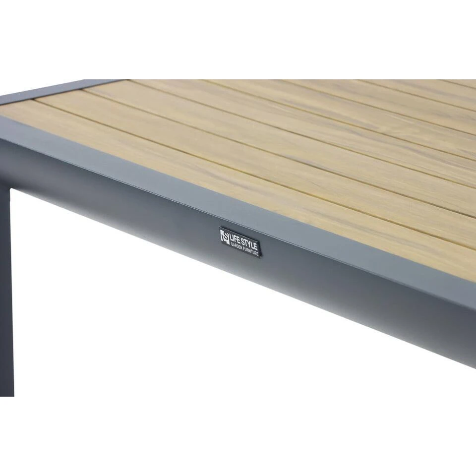 Lifestyle Borello dining tuintafel 100 x 100 cm De stoere Lifestyle Borello dining tuintafel 100 x 100 cm is volledig gemaakt van aluminium en is geschikt voor 2 tot 4 personen. Je kunt dus met de hele familie gezellig buiten eten of een spelletje doen in jouw achtertuin. De Lifestyle Borello dining tuintafel is stevig, stoer en te combineren met diverse soorten tuinstoelen uit de prachtige collectie van Tuinmeubelshop. Ben je benieuwd naar de mogelijkheden? Neem dan gerust eens contact met ons op of kom eens langs in één van onze megastores. Wij adviseren je graag! Eigenschappen Lifestyle Borello dining tuintafel 100 x 100 cm De Lifestyle Borello dining tuintafel 100 x 100 cm is volledig gemaakt van aluminium. Het tafelblad lijkt op hout, maar dit is ook van aluminium. Het pootstel van de Lifestyle Borello dining tuintafel is gemaakt van hoogwaardig, gepoedercoat aluminum. Poedercoaten is een elektrostatisch proces. Hierbij wordt de poeder op het aluminium aangebracht. Dit wordt verhit in een oven. Tijdens het uitharden worden de poederdeeltjes door de warmte eerst vloeibaar, vervolgens stroperig en tenslotte uitgehard tot een mooie, zeer duurzame coating op de tuintafel. De Lifestyle Borello dining tuintafel kan het gehele jaar door in je tuin blijven staan en geeft plaats aan 2 tot 4 personen. De Lifestyle Borello dining tuintafel is ook beschikbaar in de maten 180 x 100 cm en 240 x 100 cm.