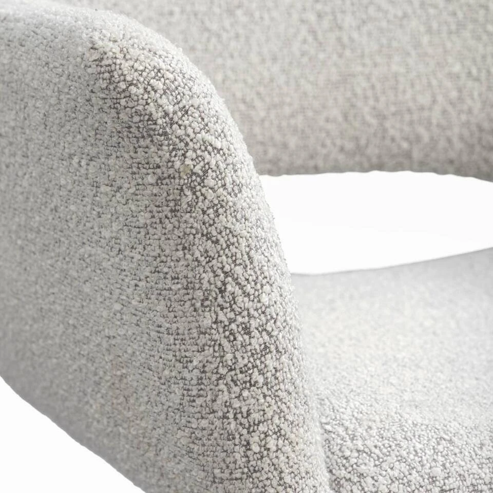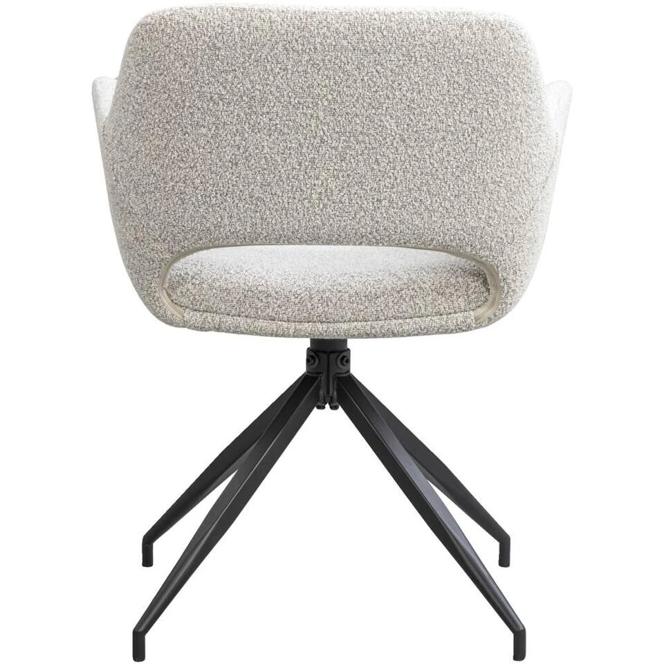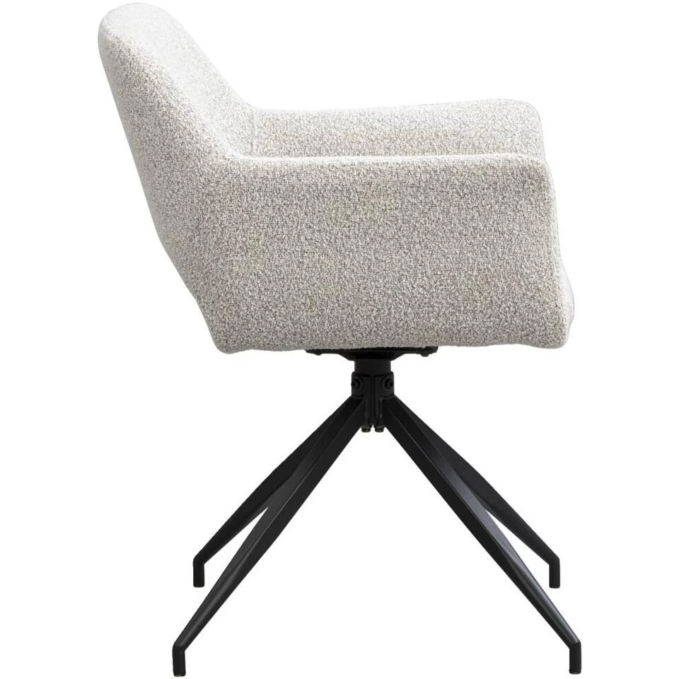 Eetkamerstoel Belle is een elegante stoel met een klassiek design. Met zijn crèmekleurige bekleding en zwarte metalen poten past deze stoel in ieder interieur. Door zijn open rug heeft de stoel een open en frisse, eigentijdse uitstraling. De armleuningen en rugleuningen zorgen voor extra comfort en door het draaibare onderstel van 180 graden kun je makkelijk aanschuiven en uren blijven tafelen. Voeg een vleugje stijl toe aan jouw eetkamer!