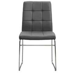 Eetkamerstoel Chicago heeft een gave, stoere leatherlook in de kleur grijs. Deze moderne stoel schuif je gemakkelijk onder elke eettafel en is eenvoudig te reinigen.