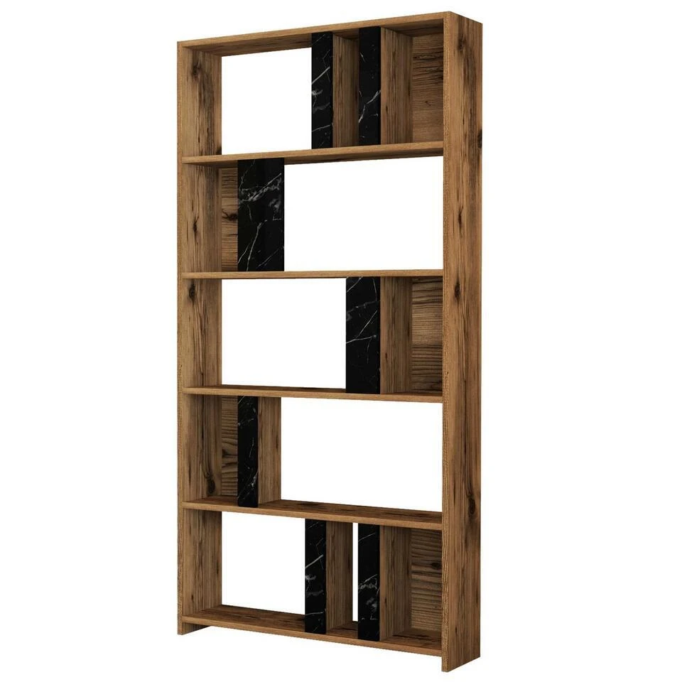 Gemaakt van 100% gemelamineerd spaanplaat, is deze boekenplank niet alleen duurzaam maar straalt hij ook een strakke en eigentijdse look uit. De walnoot en zwarte kleurencombinatie voegt een vleugje verfijning toe aan elke ruimte, waardoor het een perfecte aanvulling is voor je huis of kantoor.
