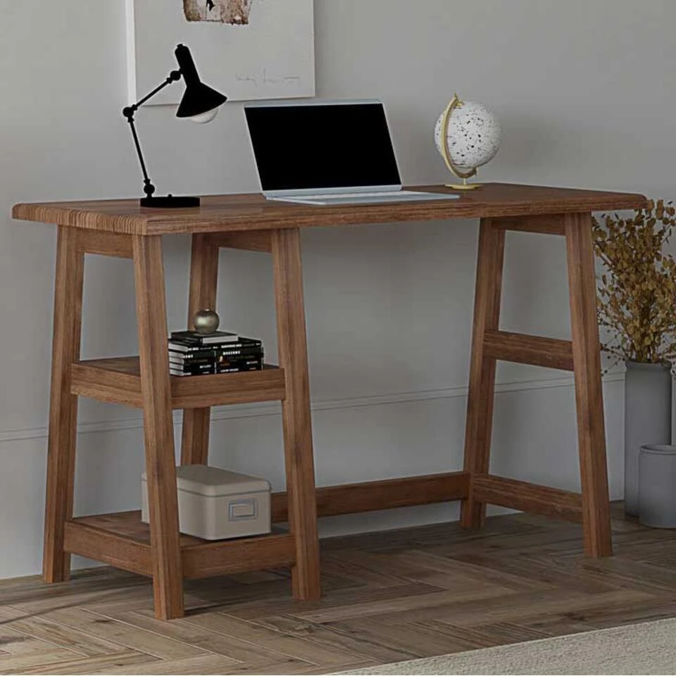 Of je nu een student, een professional of een creatieveling bent, dit bureau is ontworpen om aan al je behoeften te voldoen. Het ruime oppervlak biedt voldoende ruimte voor je laptop, notitieblokken en zelfs een kopje koffie, terwijl de zijplank extra ruimte biedt voor je printer of decoratieve voorwerpen. Laat je fantasie de vrije loop terwijl je creëert, studeert of aan je volgende meesterwerk werkt.