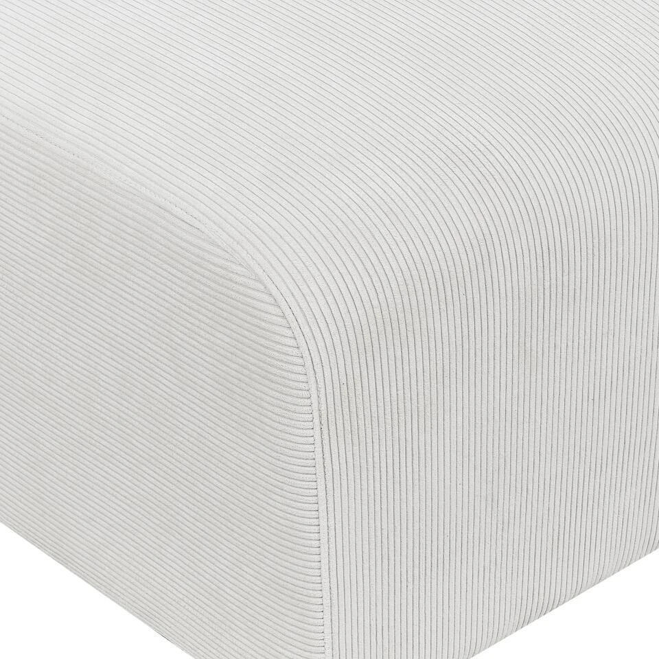Extra informatie: Houd er rekening mee dat corduroy-stof er een beetje anders uit kan zien wanneer het wordt blootgesteld aan verschillende soorten licht – het heeft de neiging meer te glinsteren bij daglicht en ziet er meer afgezwakt uit bij kunstlicht binnenshuis.