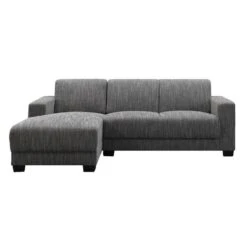 Hoekbank Aberdeen links is een tijdloze bank uitgevoerd in een gemêleerde grijze New Berlin stof. Deze linkse hoekbank heeft een robuuste uitstraling waarop je heerlijk kunt onstpannen dankzij de chaise-longue. De brede, lage poten geven de bank een tijdloze look. Door de grijze bekleding is deze bank makkelijk te combineren met verschillende interieurs.