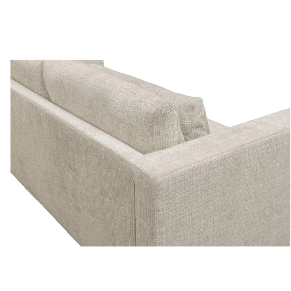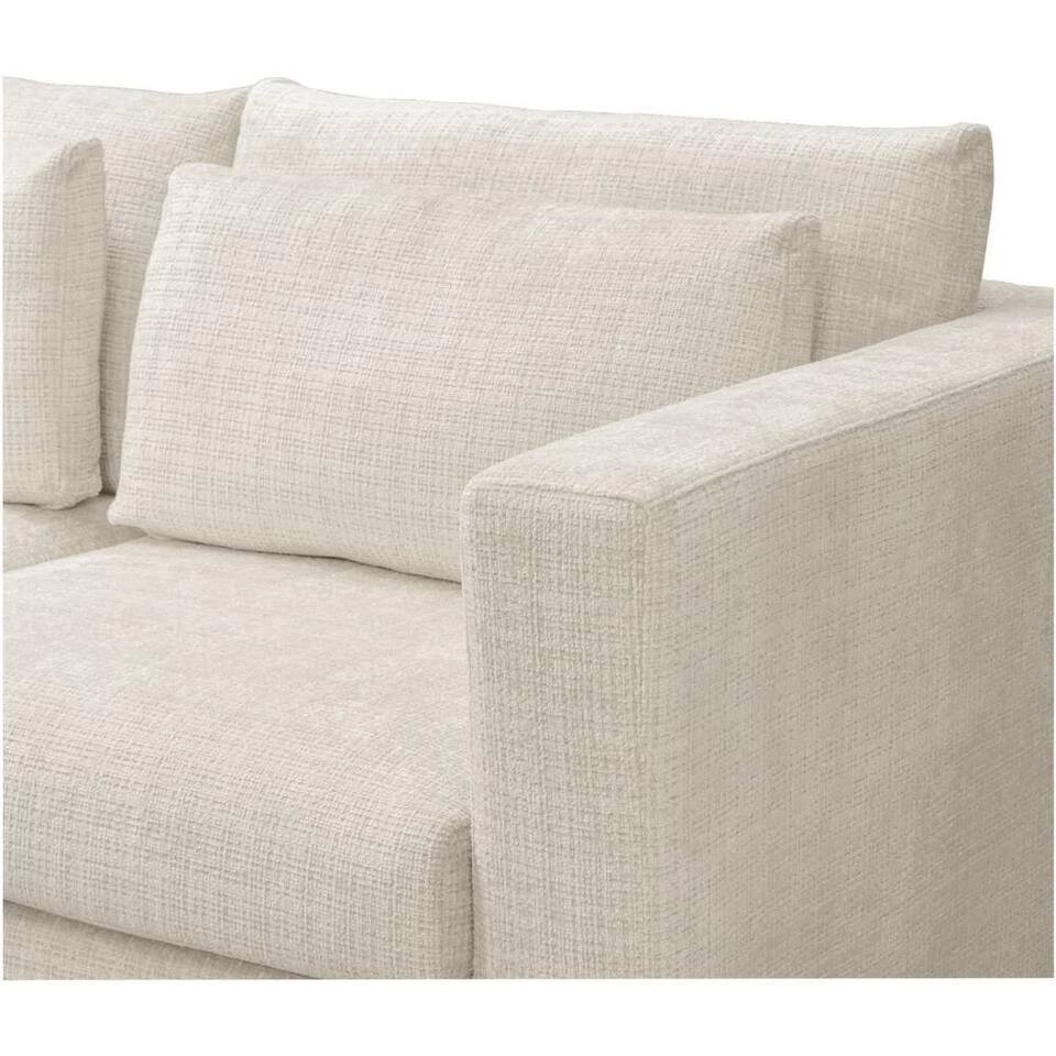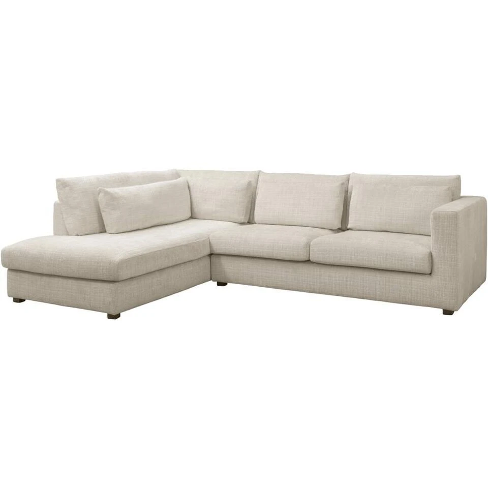 Hoekbank Chelsea is een elegante bank met een moderne look. Een échte plofbank met een bewust gecreëerd nonchalant karakter. De bank is gestoffeerd met stof Cyclamen in de kleur off-white en heeft een hoek aan de linkerkant. Bank Chelsea heeft een dubbele rij kussens. De voorste kussens zijn alleen bedoeld voor extra comfort. Klop deze voorste kussens meerdere keren per week goed op zodat de kussens hun vorm behouden. De kussens hebben een losse vulling en dit draagt bij aan het nonchalante karakter van deze bank. De romp is lekker diep dus dit is de ideale loungebank.