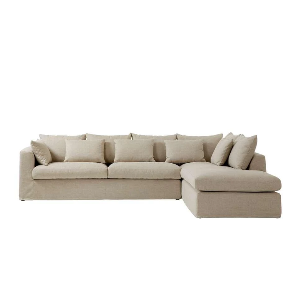Deze hoekbank is uitgerust met een chaise longue, waar je heerlijk languit op kunt ontspannen.