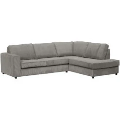 De bank Stuttgart is een tijdloze hoekbank uitgevoerd in een grijskleurige ribstof. De bank heeft een robuuste uitstraling waarop je heerlijk kunt ontspannen dankzij de hoek aan de rechterkant. De bank is lekker ruim zodat je er met het hele gezin gezellig op kunt kruipen. Door de grijze kleur is deze bank makkelijk te combineren. De afmetingen van de hoekbank Stuttgart is 80x267x207 cm (hxbxd).
