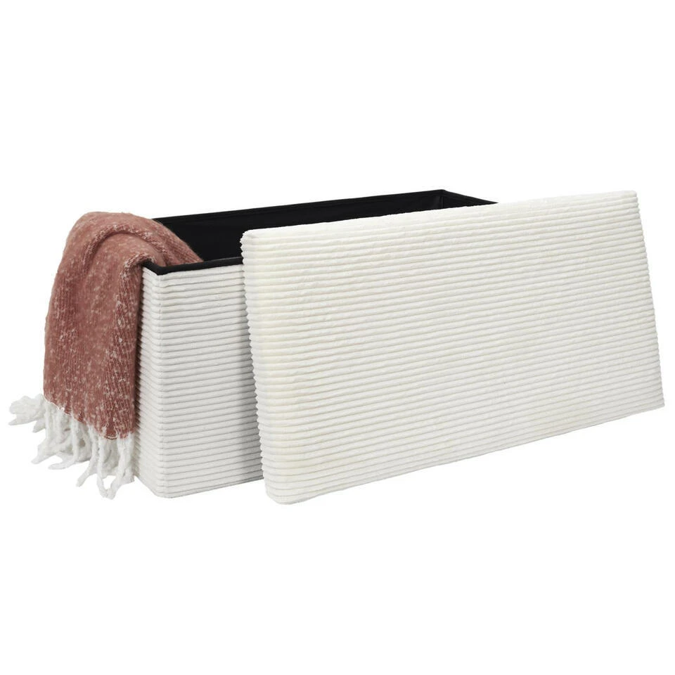 Home Deco Factory poef Cocoonen met opbergruimte waar je ook op kunt zitten. Deze witte opvouwbare poef, ook wel een hocker genoemd is ideaal voor elk huishouden. De poef heeft een afneembare deksel, geeft je extra opbergruimte en is tevens te gebruiken als voetenbankje. Bespaar ruimte door bijvoorbeeld speelgoed of dekens erin op te bergen of de poef als zitplek te gebruiken. Een mooie aanvulling voor in huis. Kleur: wit. Materiaal: MDF/polyester. Afmeting: ca. 76 x 38 cm.