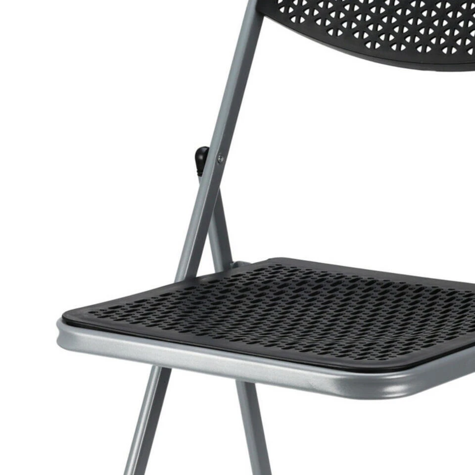 Klapstoelen voor buiten en/of binnen in de kleur zwart. Opvouwbare bijzet stoelen of vouwstoelen genoemd. Afmetingen: 48 x 48 x 82 cm. Deze handige bijzet/extra stoelen zijn gemaakt van zeer stevig kunststof. Deze stoeltjes zijn super handig op de momenten dat je extra gasten thuis ontvangt. Het aantal zitplaatsen is bijna altijd ontoereikend. De stoelen klap je na gebruik in en bergt ze weer op. Gewicht: 2 kilo.