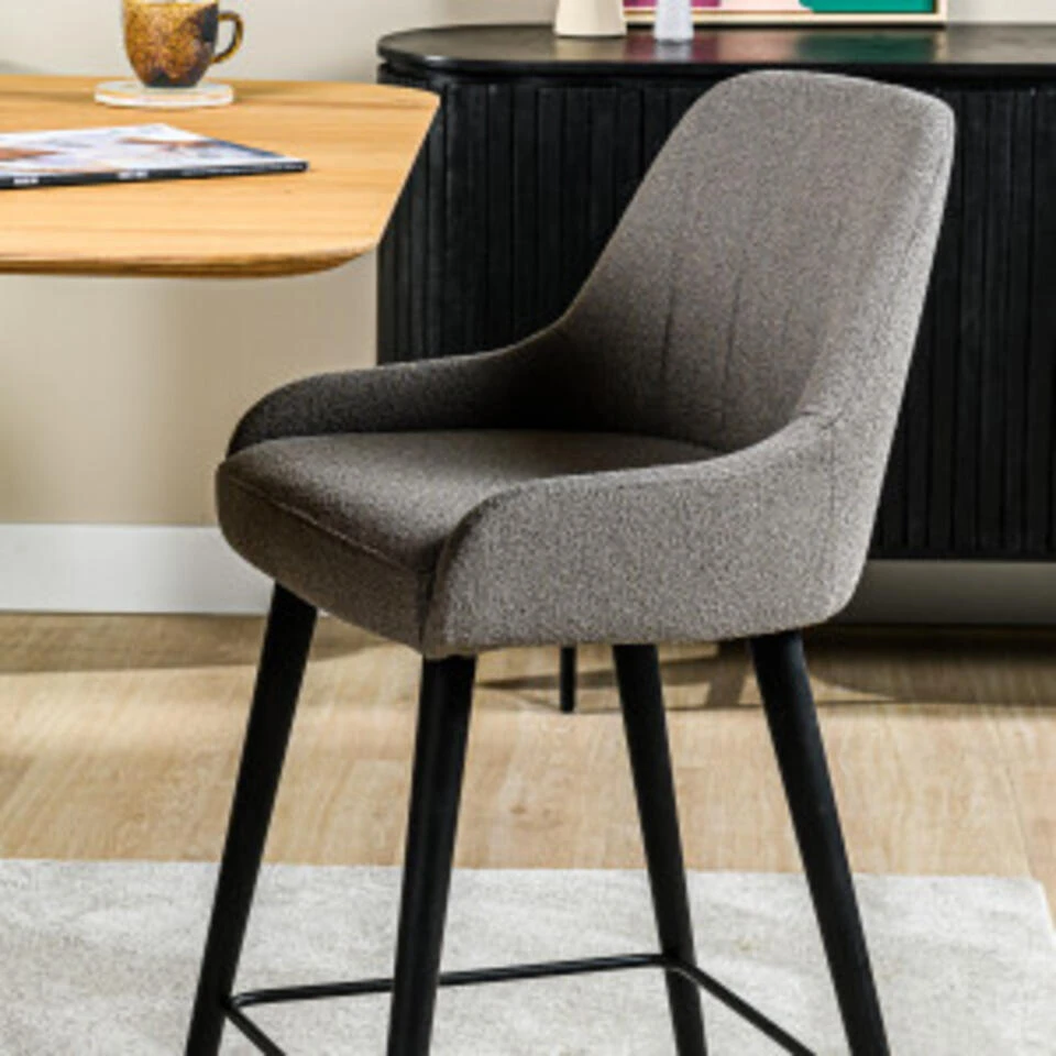 Barkruk B311 is een prachtige kruk in een fijne zachte stof, waar comfort en verfijning samen komen. Een prachtige kruk waarbij zijn charme zit in de eenvoud. De zwarte, naar buiten staande poten voorzien van een praktische opstap, zorgen ervoor dat de kruk lekker stabiel op de grond staat en er op een fijne manier op de barkruk gezeten kan worden.