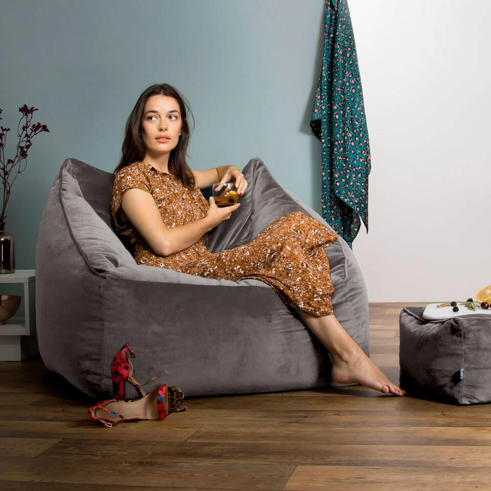 ICONISCH ONTWERP; Deze luxe zitzak is klaar om een statement te maken. Hij is gemaakt van super zacht pluchen fluweel, heeft een onweerstaanbaar aanvoelende textuur en een biesdetail voor een mooie finishing touch.