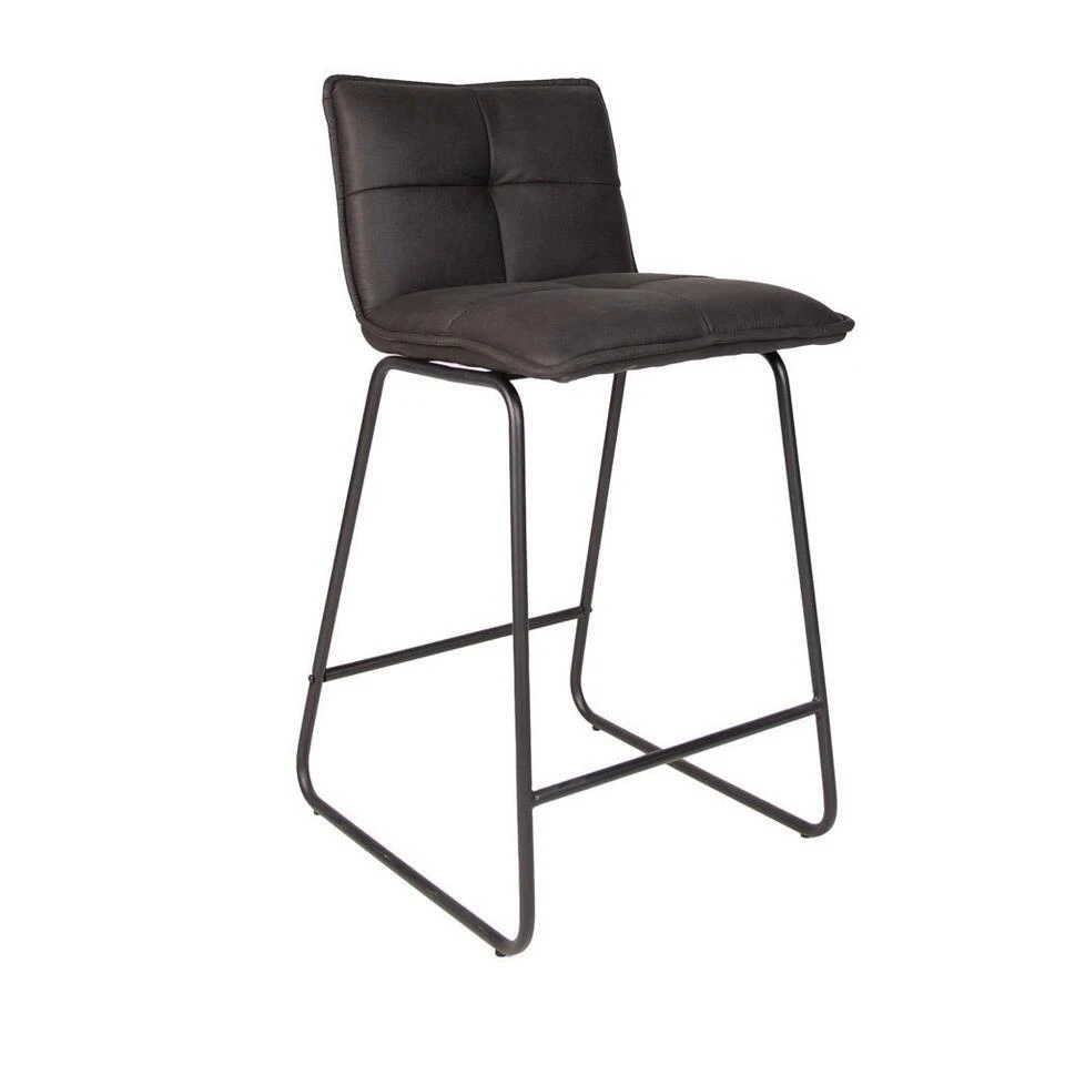 Het frame van Barkruk Jelle is gemaakt van zwart gepoedercoat metaal. Het zwart gepoedercoat metaal in combinatie met de zitting geeft de barkruk een elegant en stoer karakter. Het voetensteun is verwerkt in het frame wat zorgt voor extra comfort en stevigheid. Onder dit product zitten vloerdoppen die laminaat beschermen tegen krassen. Er worden viltjes meegeleverd om overige vloeren te beschermen tegen krasvorming.
