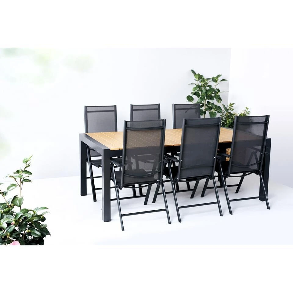 Schuif de tafel uit als je mensen over de vloer hebt, en klap de tafel weer in zodra je iets meer ruimte op het terras wil. De Stef tuintafel heeft een frame van zwart gepoedercoat aluminium en een tafelblad gemaakt van polywood latjes. Polywood is een duurzame kunststof maar heeft de uitstraling van hout, waardoor je een mooie houtlook tafel hebt. De onderkant van het tafelblad is 67 centimeter hoog. Het verlengstuk van de tafel heeft een lengte van 69,5 centimeter waardoor de tafel tot 275 centimeter te verlengen is. Door het uitschuifbare frame kan het verlengstuk aan het uiteinde van de tafel worden bevestigd. Let op: laat glazen niet te lang in de zon staan op een polywood tafel. Hierdoor kan een vergrootglaseffect optreden waardoor er smeltplekken ontstaan op het tafelblad. Ook hete voorwerpen zoals pannen kunnen niet direct op het tafelblad worden geplaatst.