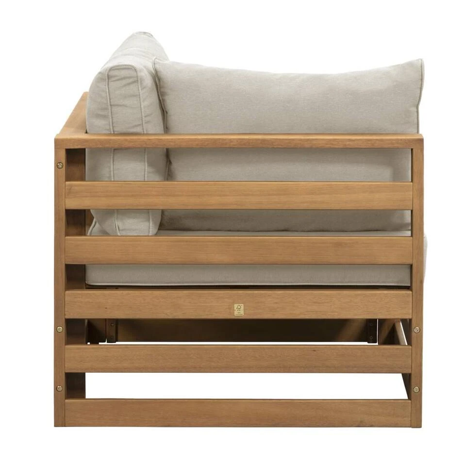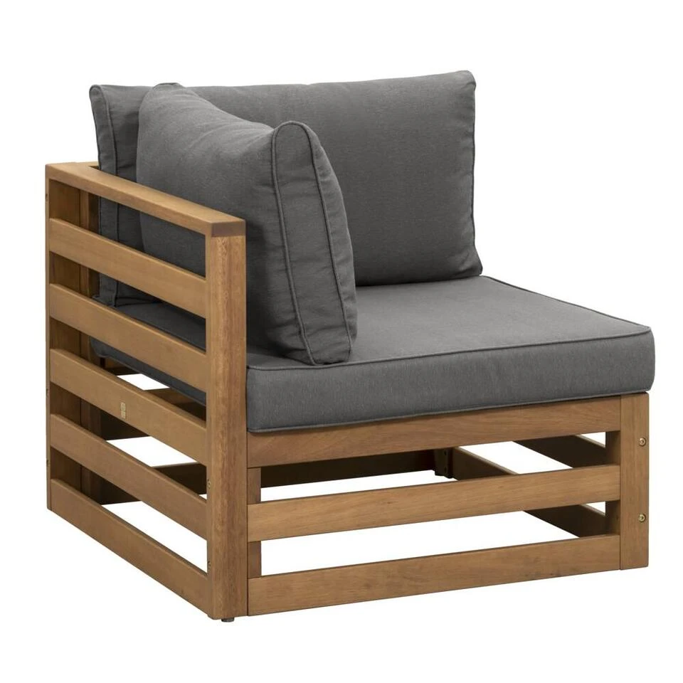 De hoek fauteuil is een onderdeel van een elementaire loungeset. Het hoekelement heeft een landelijke stijl en is gemaakt van FSC hout. Dat wil zeggen dat het hout uit duurzaam bosbeheer is gewonnen. De afmeting van dit element is 63x78x78 cm. Combineer met de andere elementen uit de clermont serie om een prachtige loungeset in de tuin te maken.