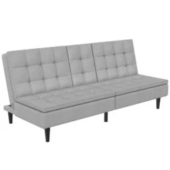 Ontworpen met comfort en functionaliteit in gedachten is deze slaapbank perfect voor elke woonruimte. Dankzij de handmatige versteloptie verandert hij eenvoudig van een gezellige bank in een ruime ligplek. Het ligoppervlak meet 191 cm in lengte en 110 cm in breedte en biedt voldoende ruimte om te ontspannen. Met een lighoogte van 40 cm biedt hij een comfortabele rustpositie. De stevige constructie ondersteunt een maximale belasting van 270 kg en garandeert duurzaamheid en stabiliteit. De zachte ribstof voegt warmte en stijl toe aan de kamer. Twee bekerhouders in de rugleuning zorgen voor extra gemak en maken loungen nog aangenamer.