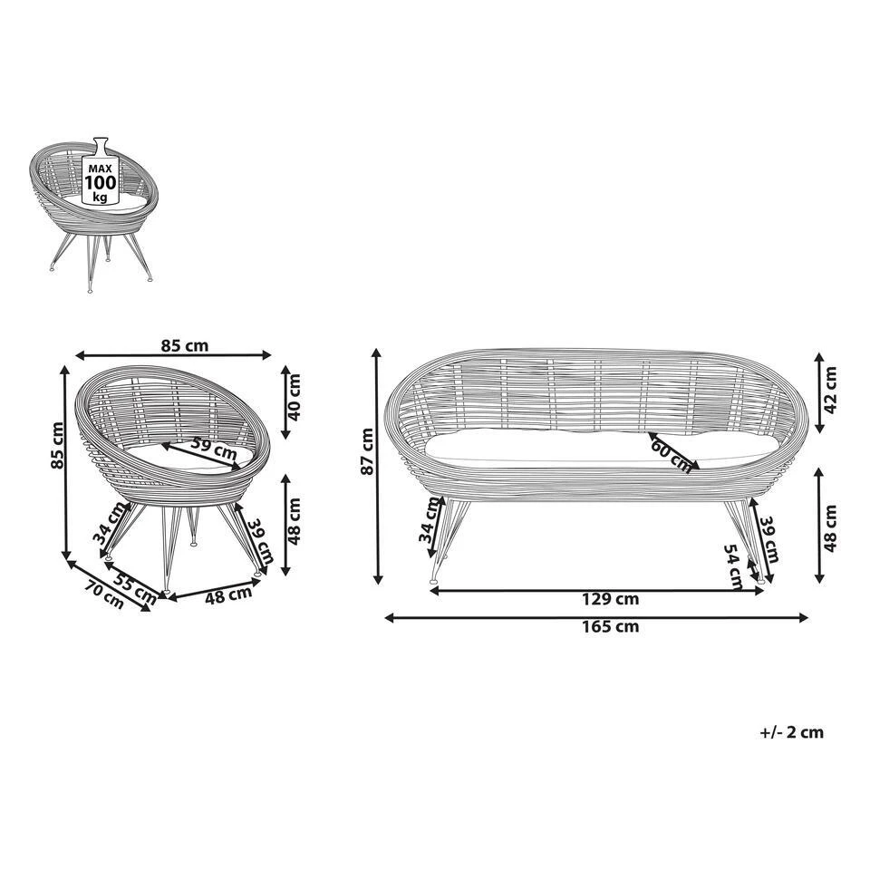Aanbod omvat: 1 x Stoel, 1 x Tweezitsbank, 2 x Zitkussen